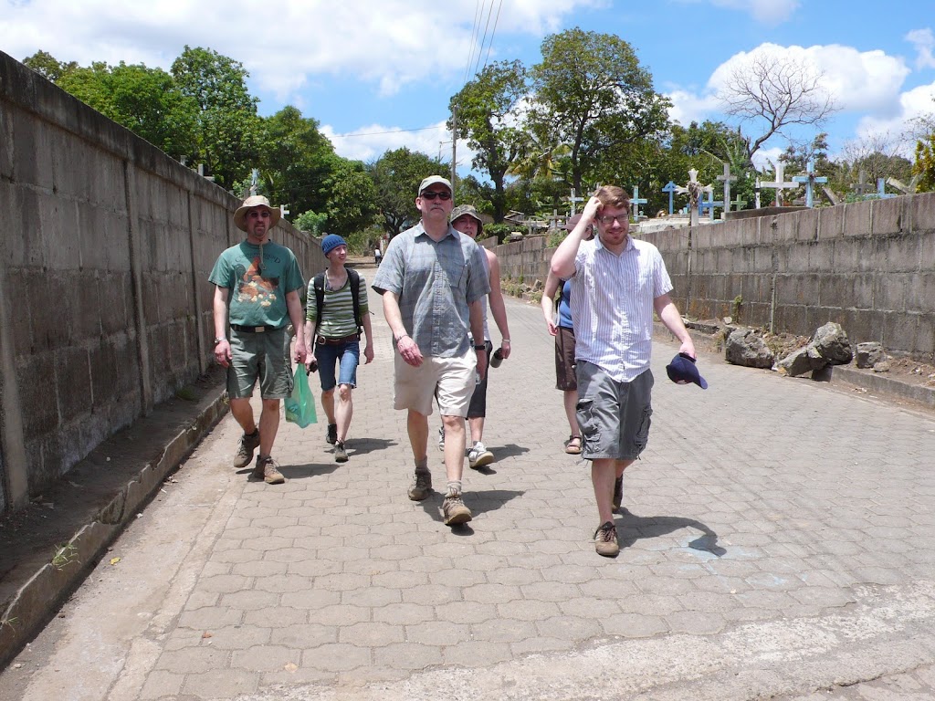 Another family of large-basket weavers showed us their process of weaving a form of sustainable-bamboo-like material and plastic shipping binding strips (that would be thrown away in the US). Another family made wooden truck shelves which they sold to clients in Costa Rica and Canada.-Emily
